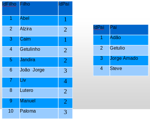 - Essas condições forçam a ter uma segunda tabela para manter os relacionamentos acima.