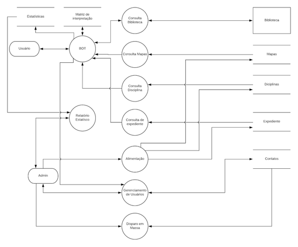 • A interação dos usuários com o sistema será feita através de um contato via whatsapp e/ou outras formas de troca de mensagem. As informações fornecidas pelo site serão colhidas através do portal da universidade, sistema da biblioteca e um eventual fórum colaborativo.