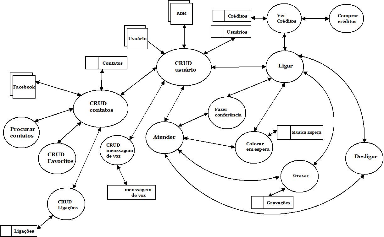 Primeiro verifica se a ligação é para um número de usuário ou um número externo de telefone (fixo ou móvel), se for um número de usuário , o usuário do sistema pode escolher se procura o número pelos contato ou digitar direto. Se for um número externo primeiro o sistema verifica se o usuário possui crédito para depois efetuar a ligação propriamente dita, caso contrário , irá oferecer planos para compra de créditos.