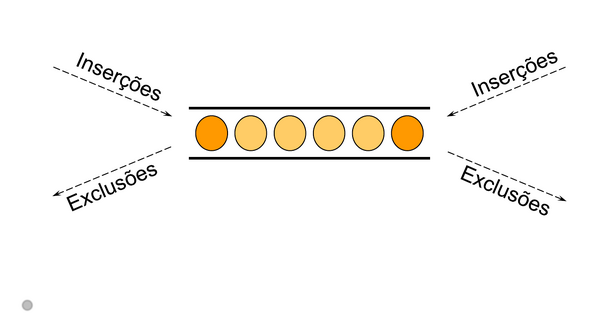 É uma fila onde tanto o início quanto o fim podem receber inserções e remoções. Isso permite funções de fila e de pilha ao mesmo tempo. Usada em algoritmos de busca, navegadores (voltar/avançar), buffers deslizantes e estruturas mais flexíveis de dados. | É uma fila onde tanto o início quanto o fim podem receber inserções e remoções. Isso permite funções de fila e de pilha ao mesmo tempo. Usada em algoritmos de busca, navegadores (voltar/avançar), buffers deslizantes e estruturas mais flexíveis de dados. | ||